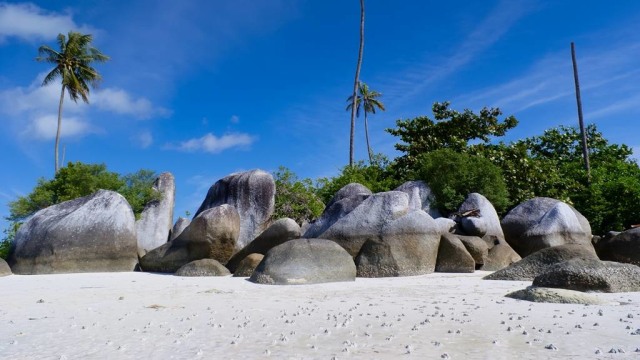 Batu granit yang gigantic dan unik melintasi garis pantai garis pantai Belitung, membentuk pemandangan yang spektakuler. Batu-batu ini dikenal sebagai “Batu-Batu yang Memotong” karena tampilan yang sangat istimewa dan tajam.